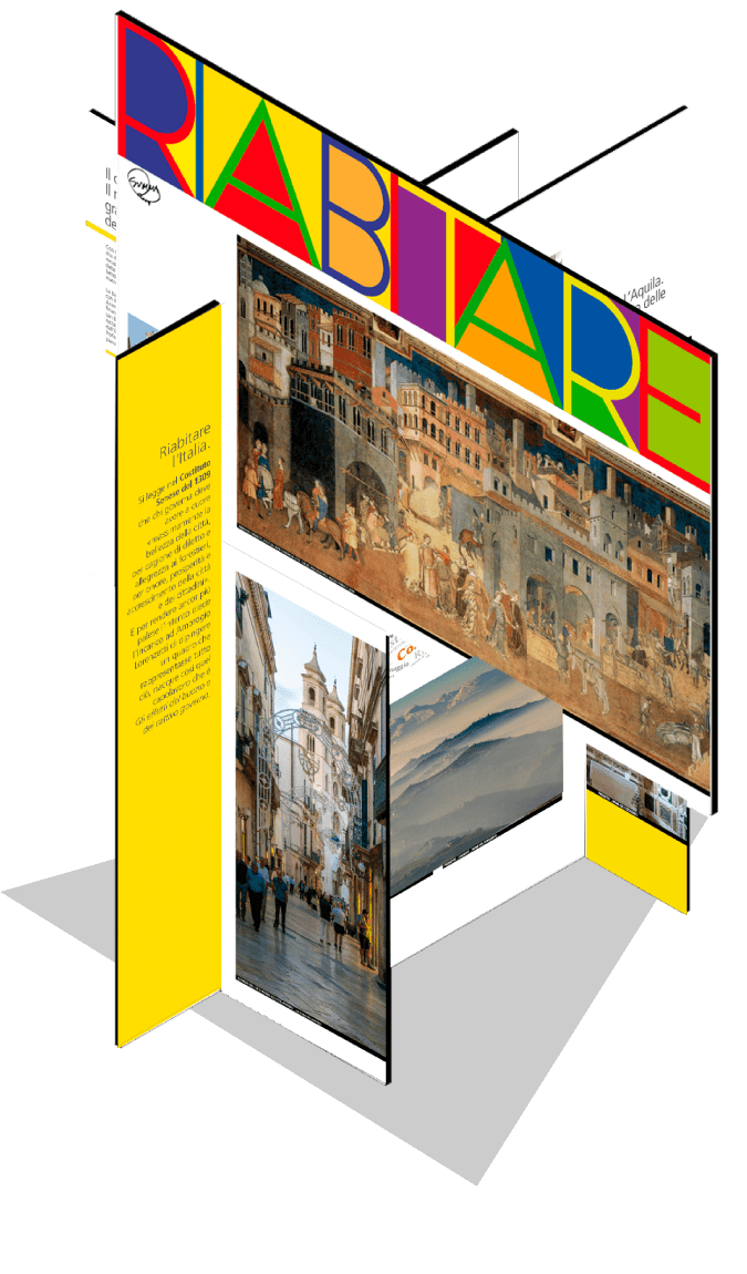 La multivisione, con la regia di ERNANI PATERRA, è un spettacolo continuo su 3 schermi e racconta, con ritmo serrato, le nuove possibilità dell’abitare che si dischiudono per i territori dell’Appennino e la buona pratica dell’Aquila.